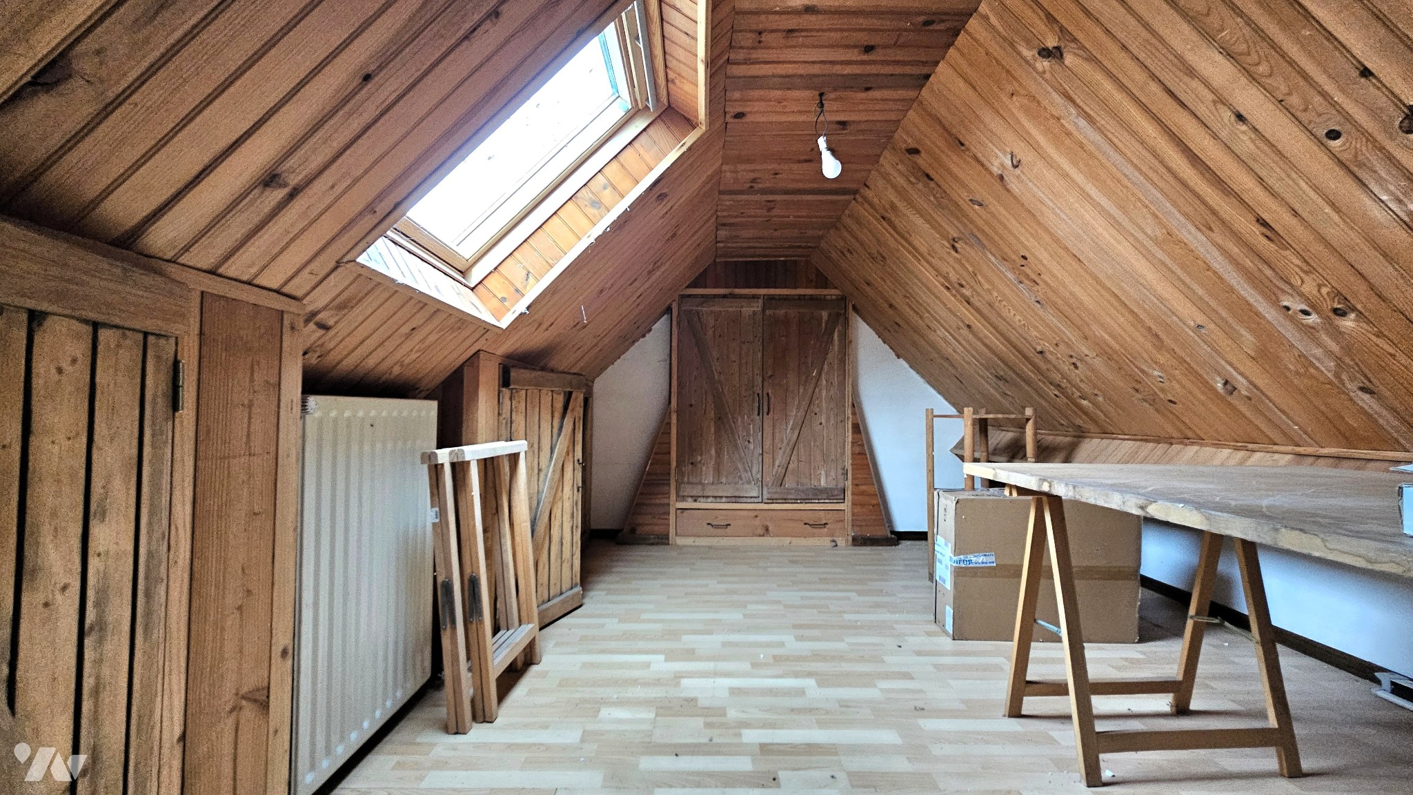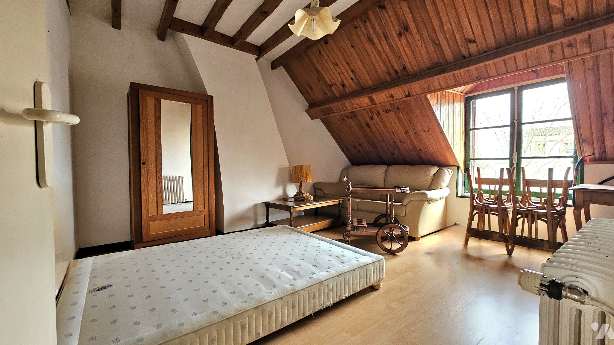 Étage : mezzanine/bureau, deux chambres, salle de bains, salle d’eau, placard.